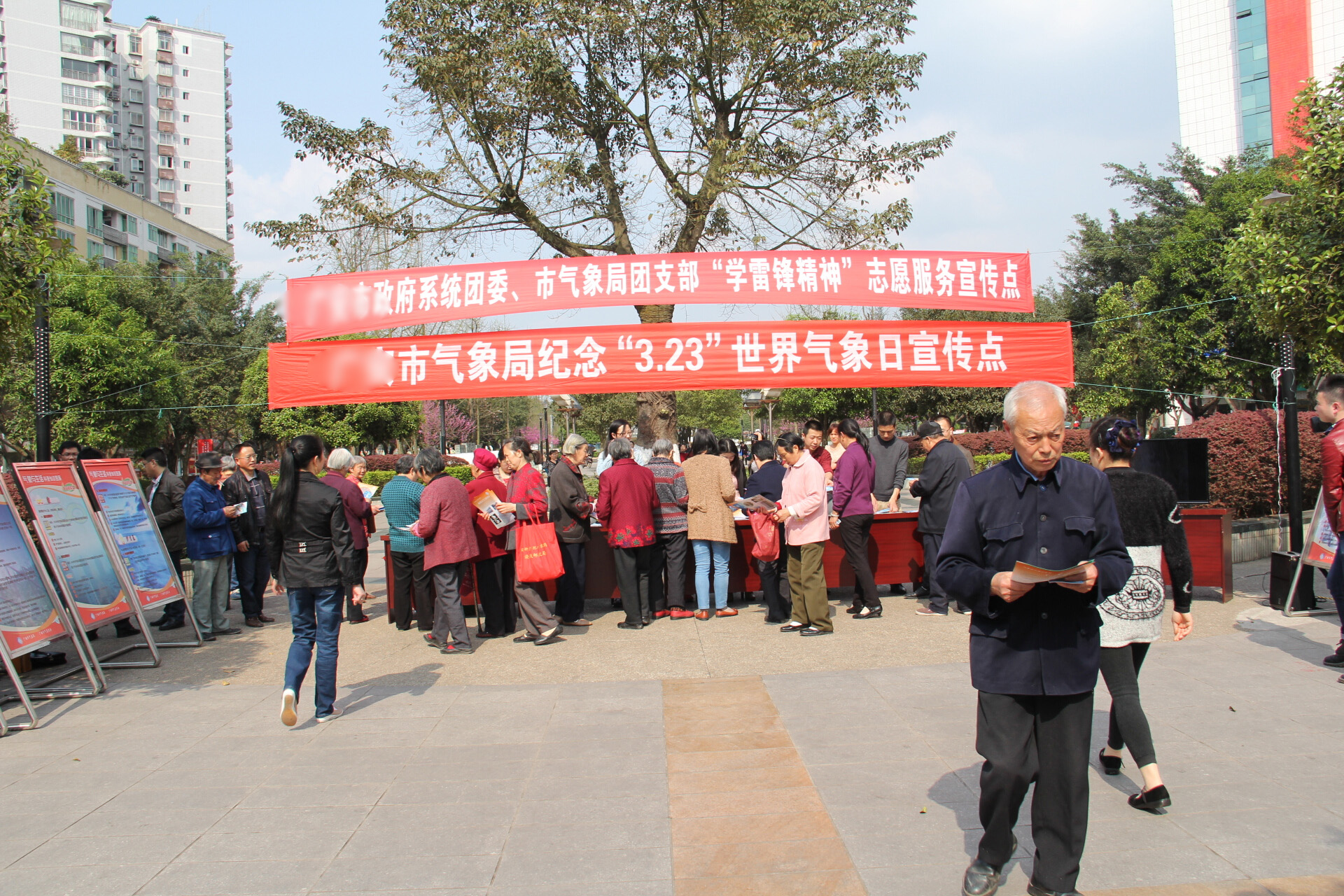 日下午,市政府系统团委、市气象局团总支部组织青年团员、青年志愿者在营山广场通过发放宣传资料、展板展示、现场讲 解等形式,向过往群众宣传讲解天气、气象和气候等概念的认识,增进公众了解气象科学并从自身做起保护气候环境,倡导全社会积极行动起来,共同应对持续性的 气候变暖,更好地适应气候变化、调整农业生产、防灾减灾,并主动采取更低碳节能的生活方式。